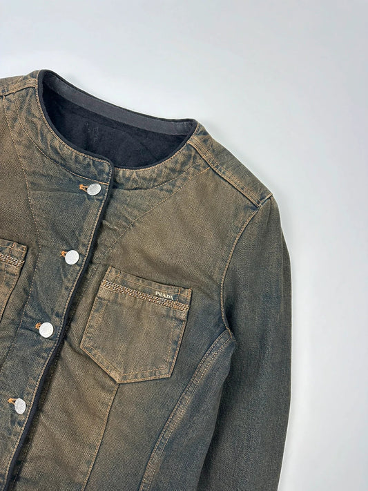 Prada Milano FW2006 Metal Chains Faded Denim Crop Jacket