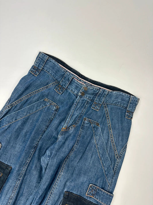 Dolce Gabbana SS03 Extra Long Cargo Mesh Denim Pants