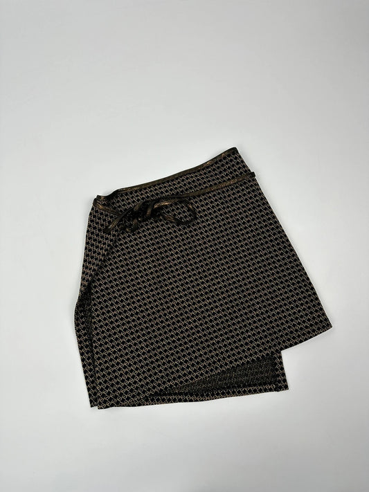 Fendi 00’s Monogram Wrap Skirt in Black and Gold Jacquard