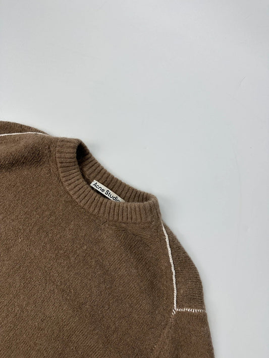 Acne Studio Brown Wool Contrast White Stitches Sweater Knit