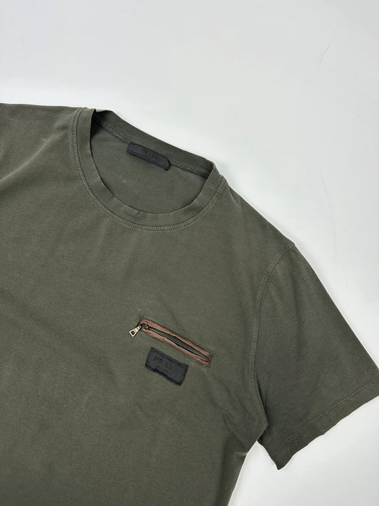 Prada Milano Zip Chest Pocket Khaki Tee