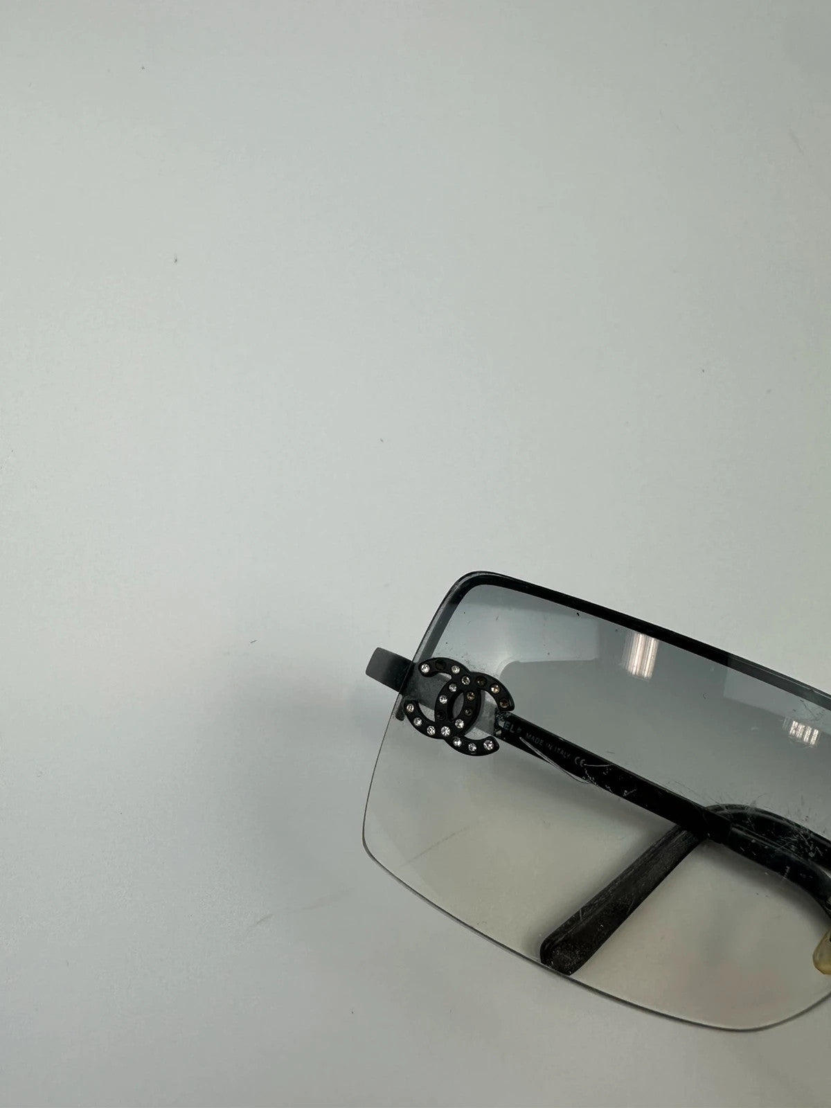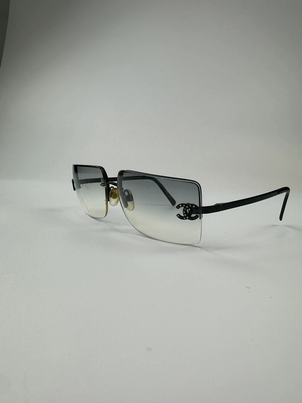 Chanel rimless sunglasses with double CC logo and rhinestones
