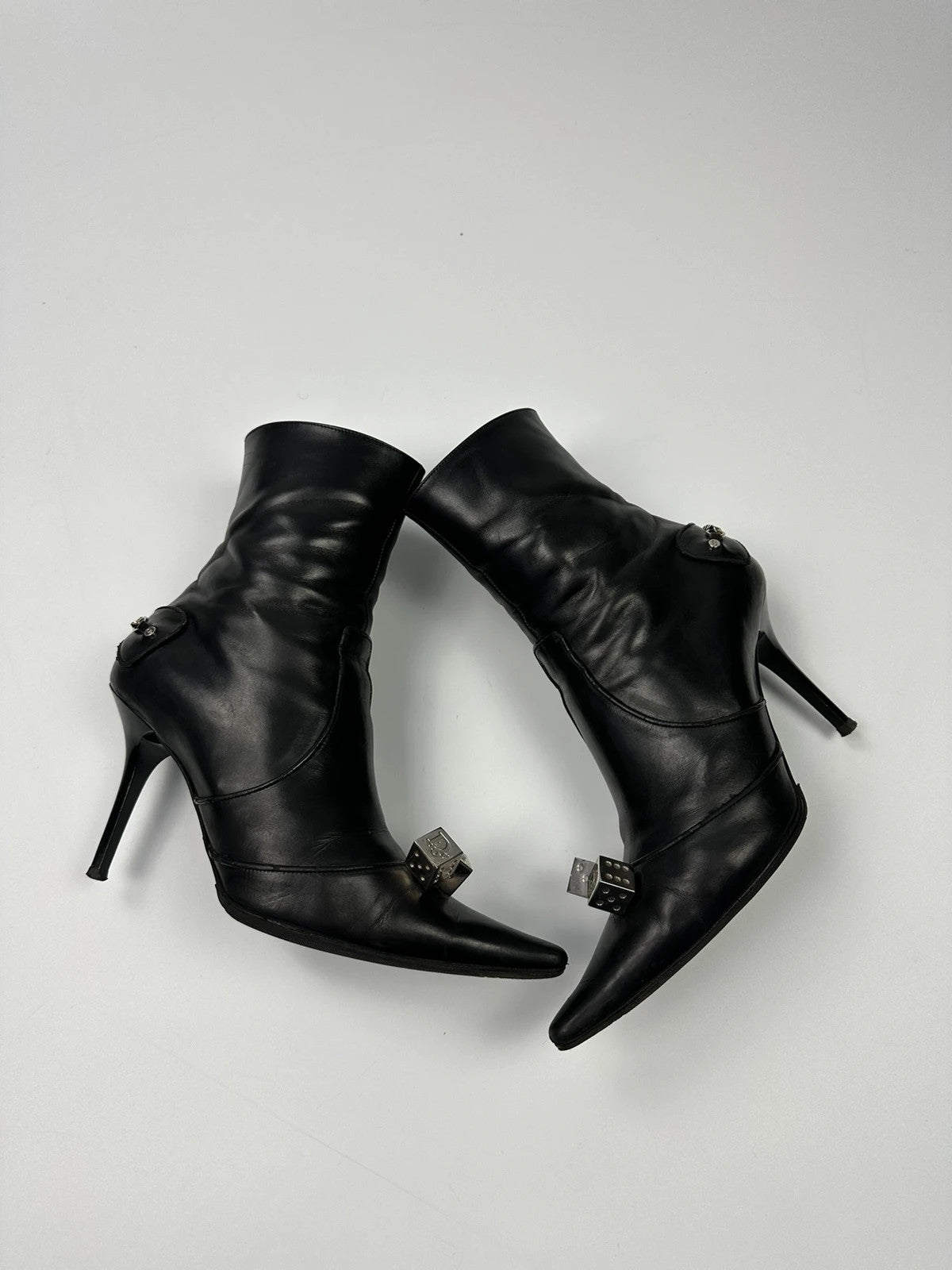 Dior By John Galliano AW04 Dice Black Leather Boots Heels