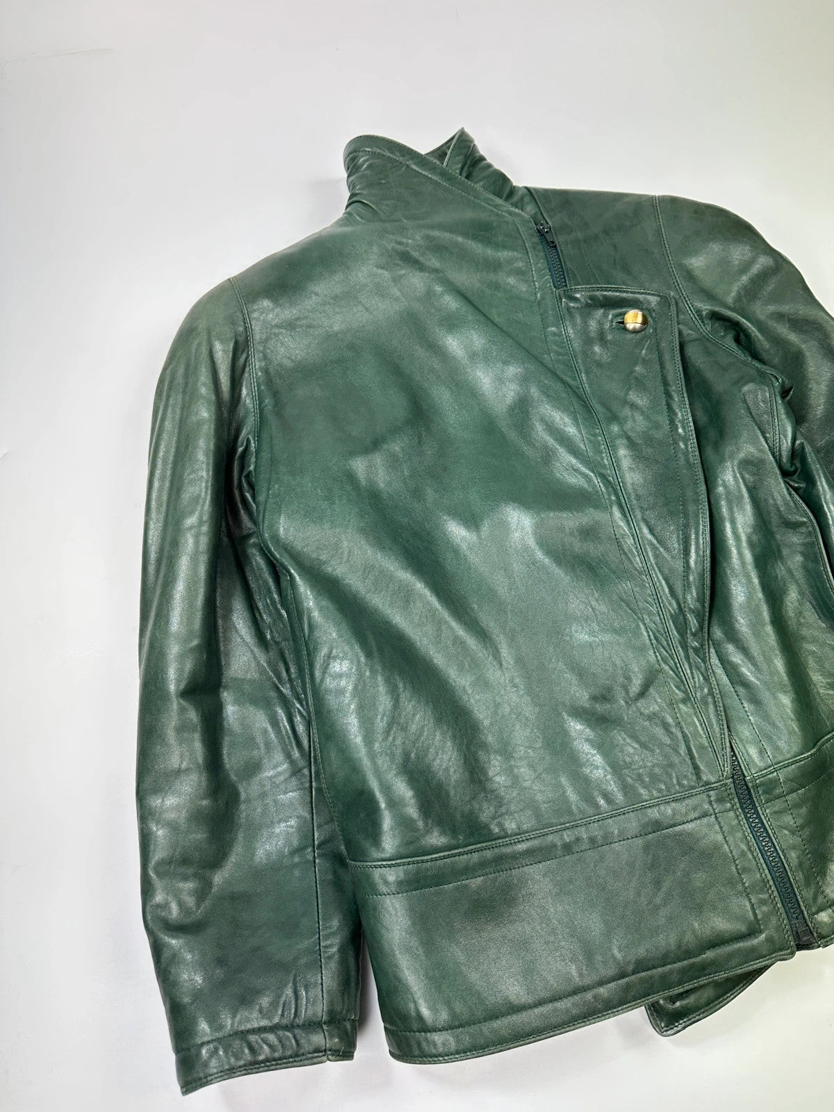 Gianni Versace FW1983-4 Forest Green Leather Shoulder Pad Jacket
