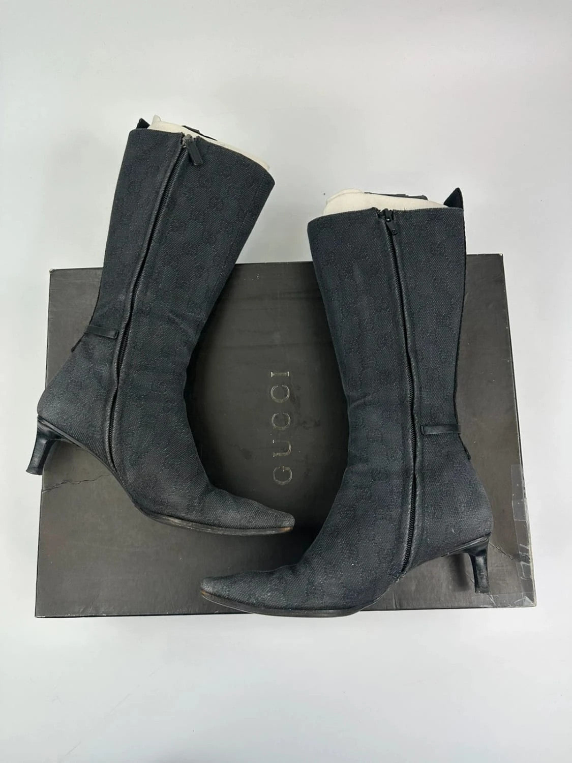 Gucci Black Monogram Boots Heels talon bout pointu