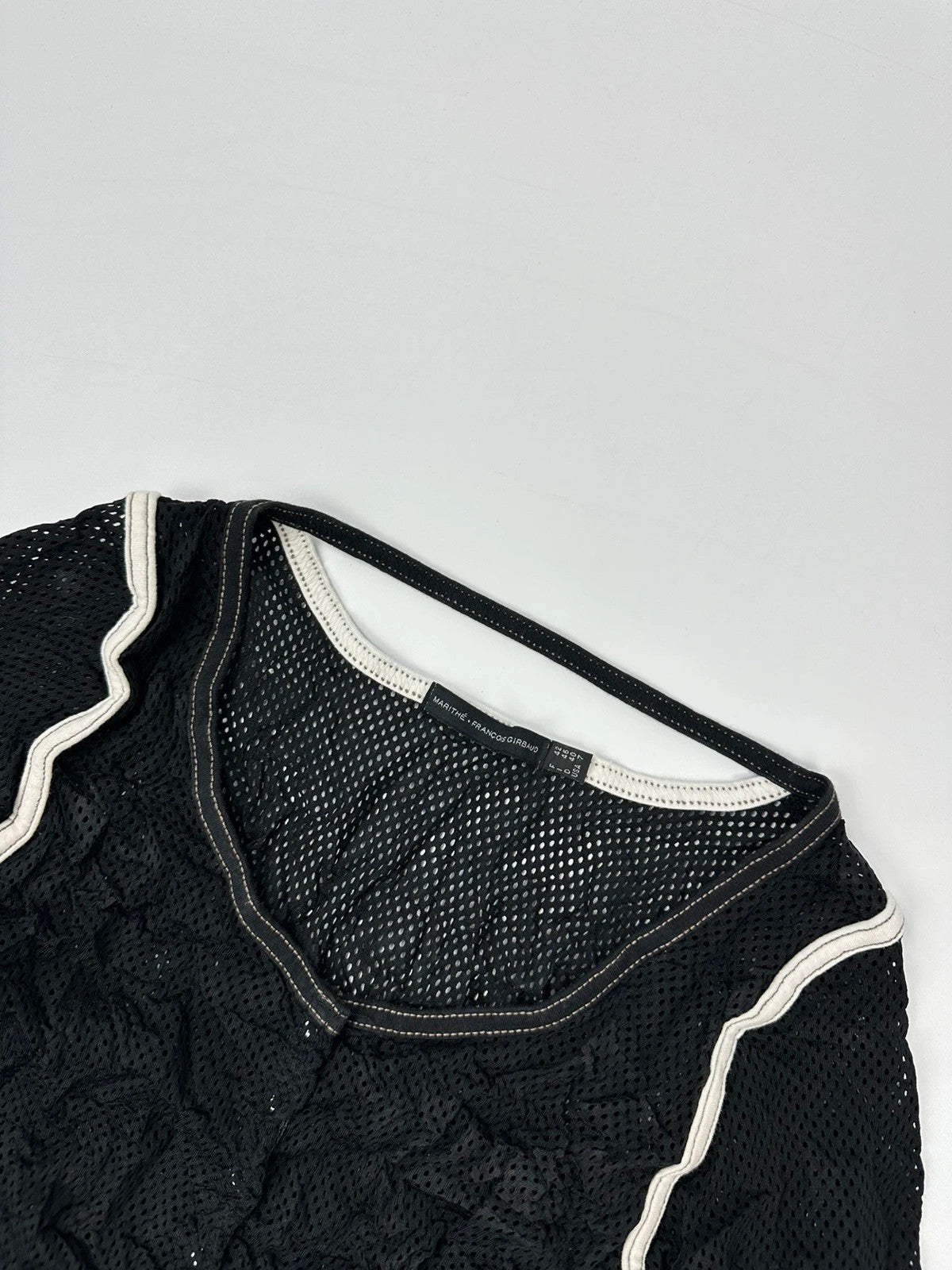 Marithé + Francois Girbaud 00’s Black Crinkle Mesh Top Longsleeves