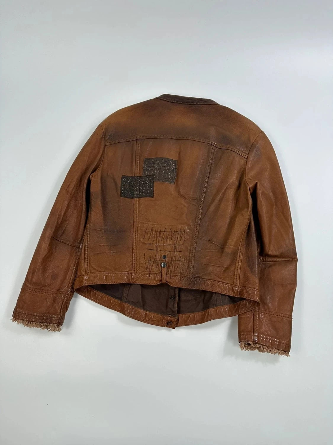 Marithé + Francois Girbaud destroy patch leather jacket veste en cuir Brown marron