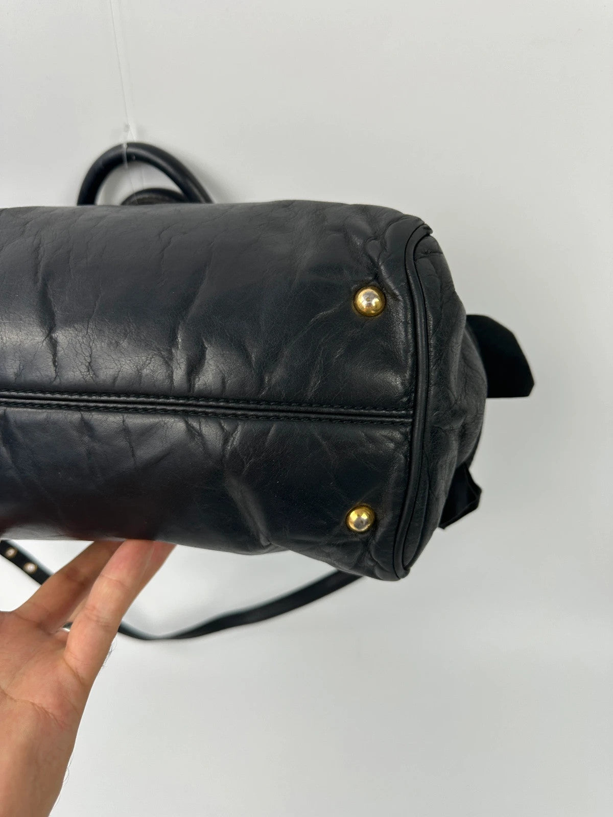 Miu Miu Black Leather Bow Bag HandBag Shoulder Bag Straps