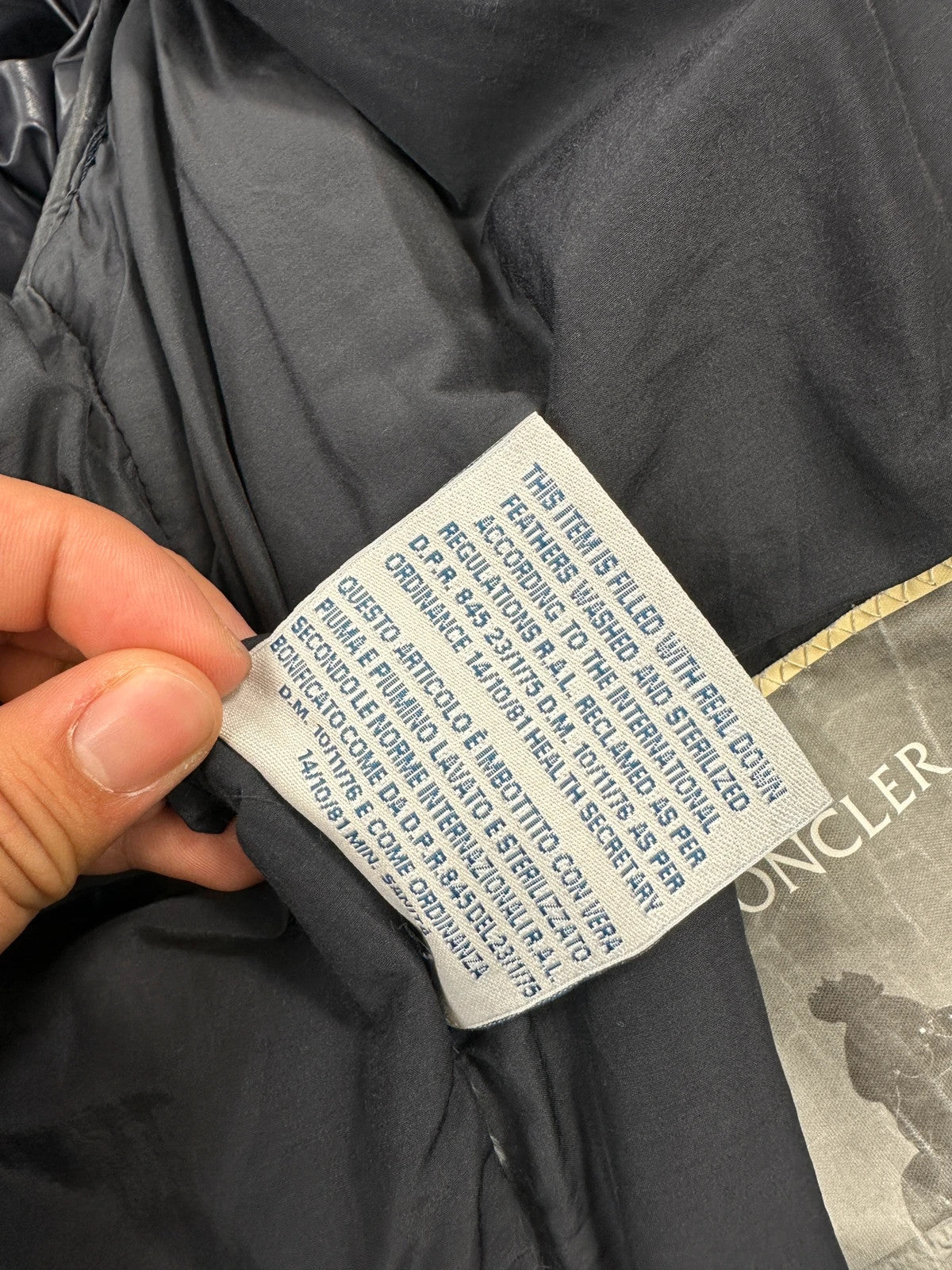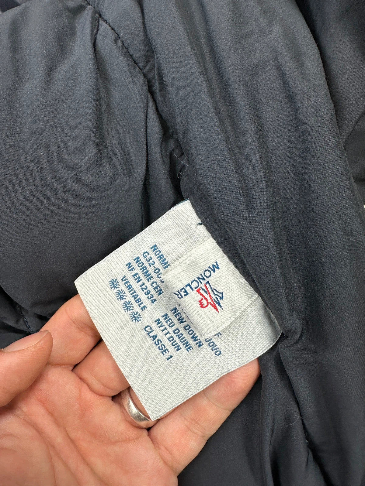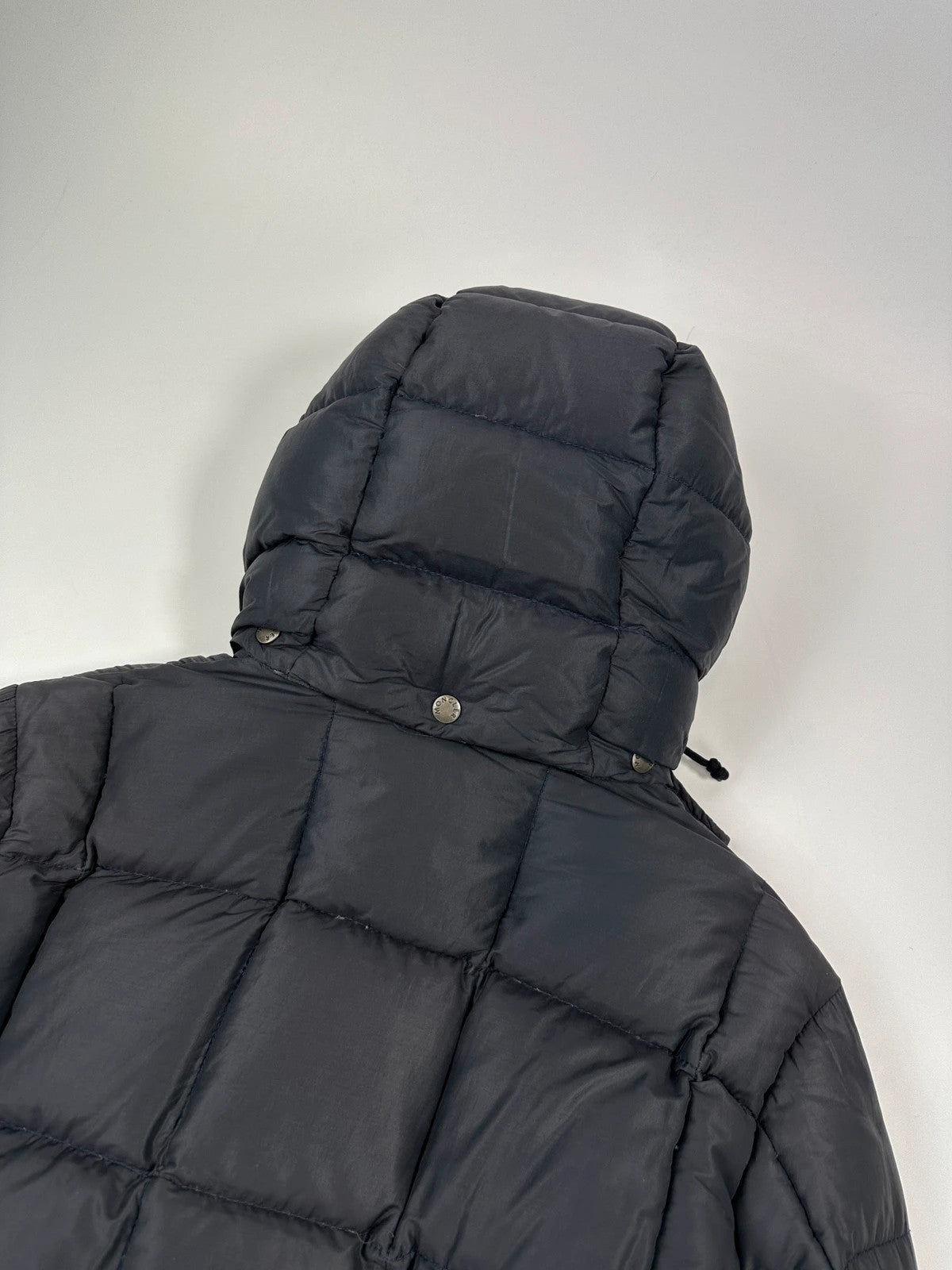 Moncler FW2005 French Logo Packed Down Puffer Hooded Jacket Navy Blue