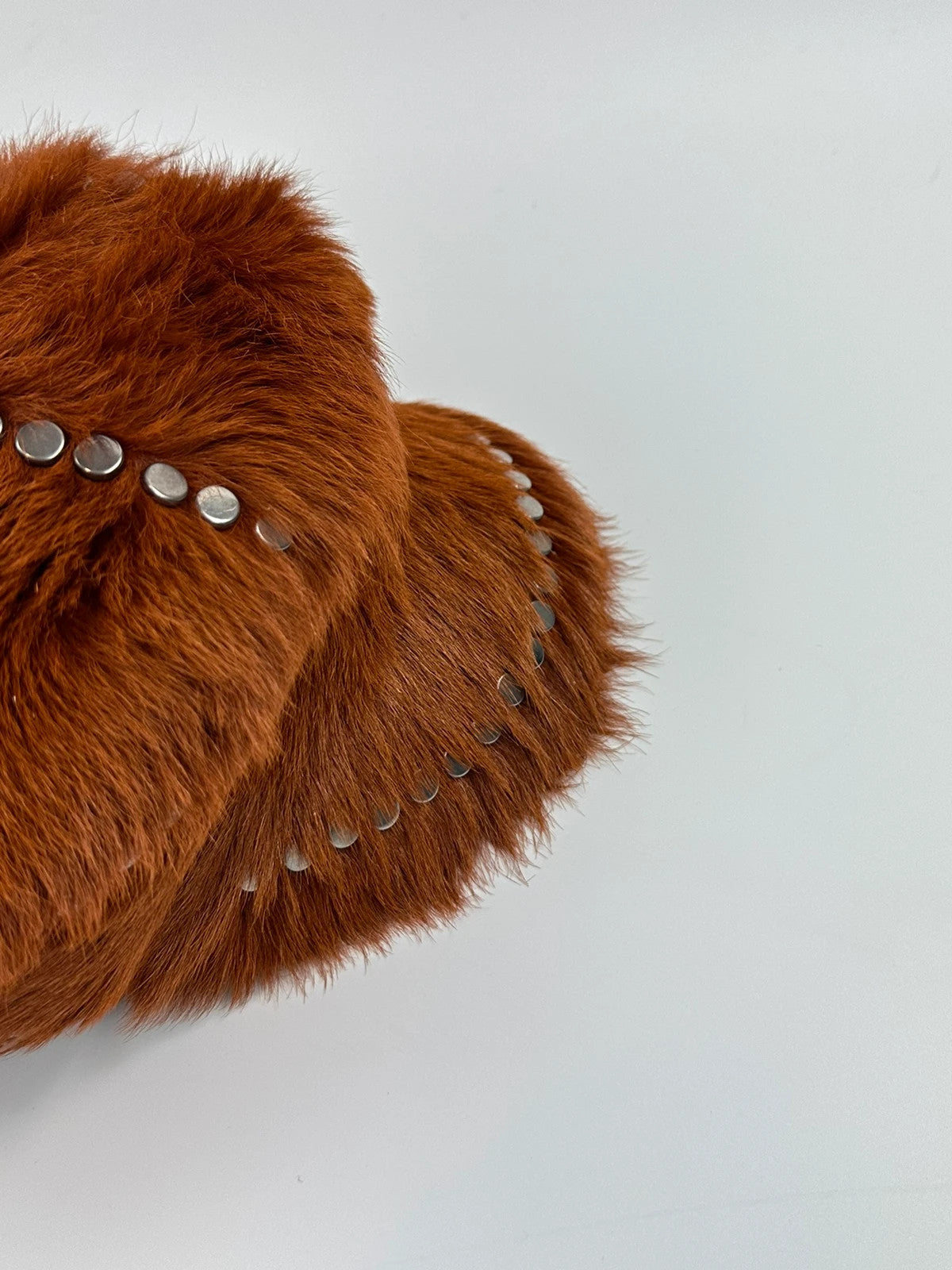 Prada Fall / Winter 2017 Studded Fur Hat Runway Cognac Silver