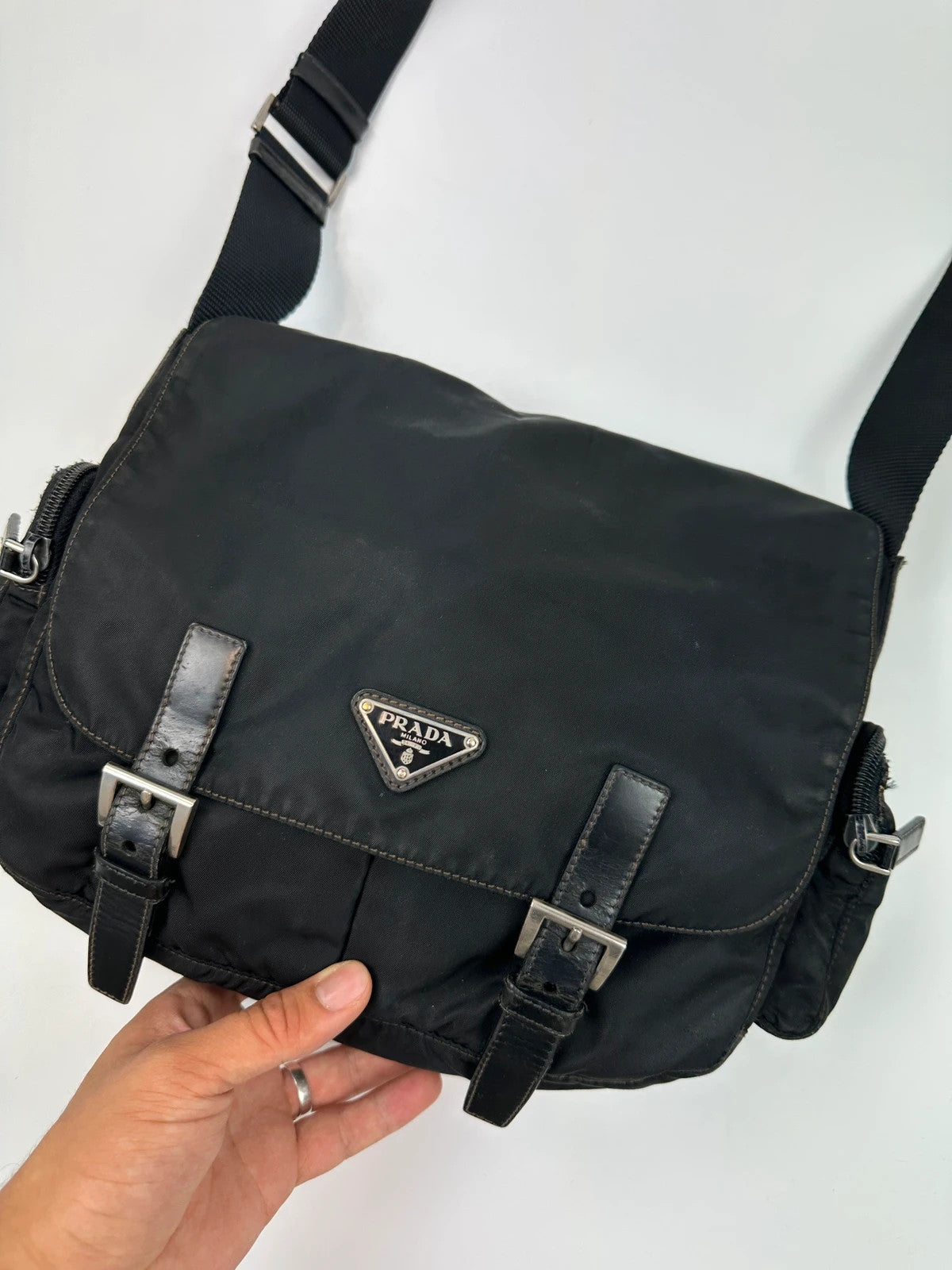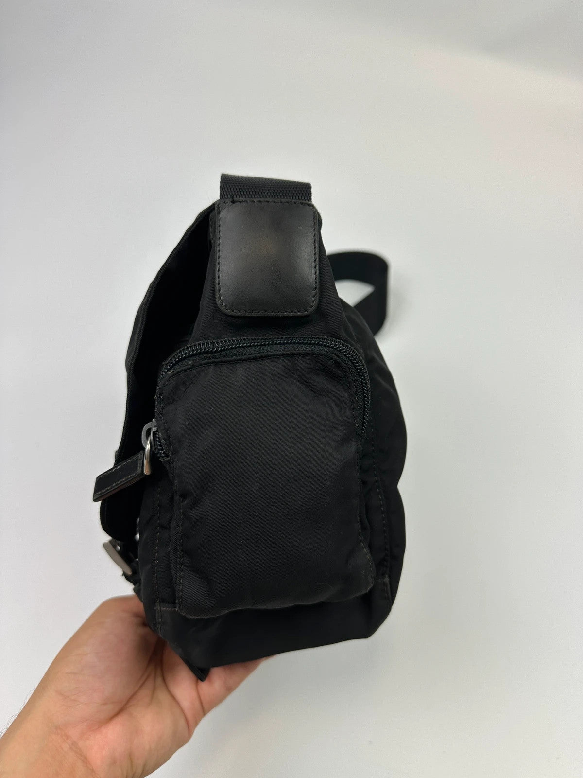 Prada Milano Black Nylon Messenger Cross Body Bag Side Zip Pockets