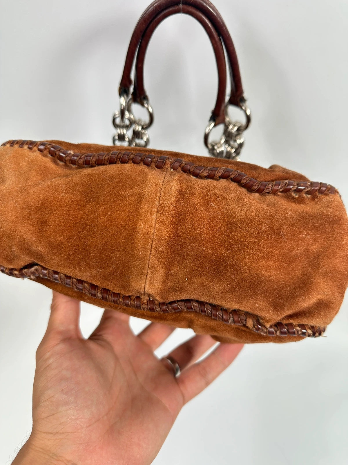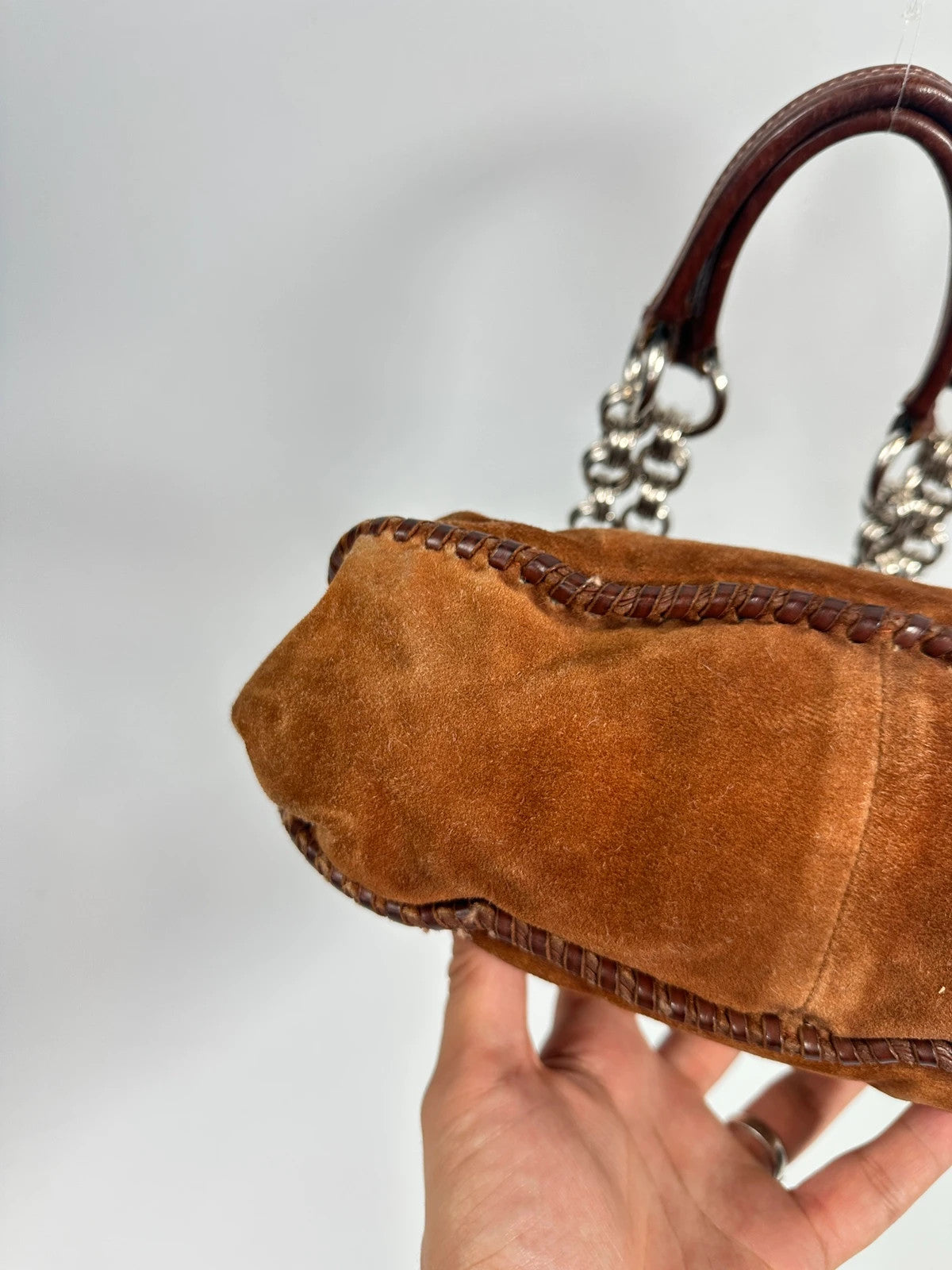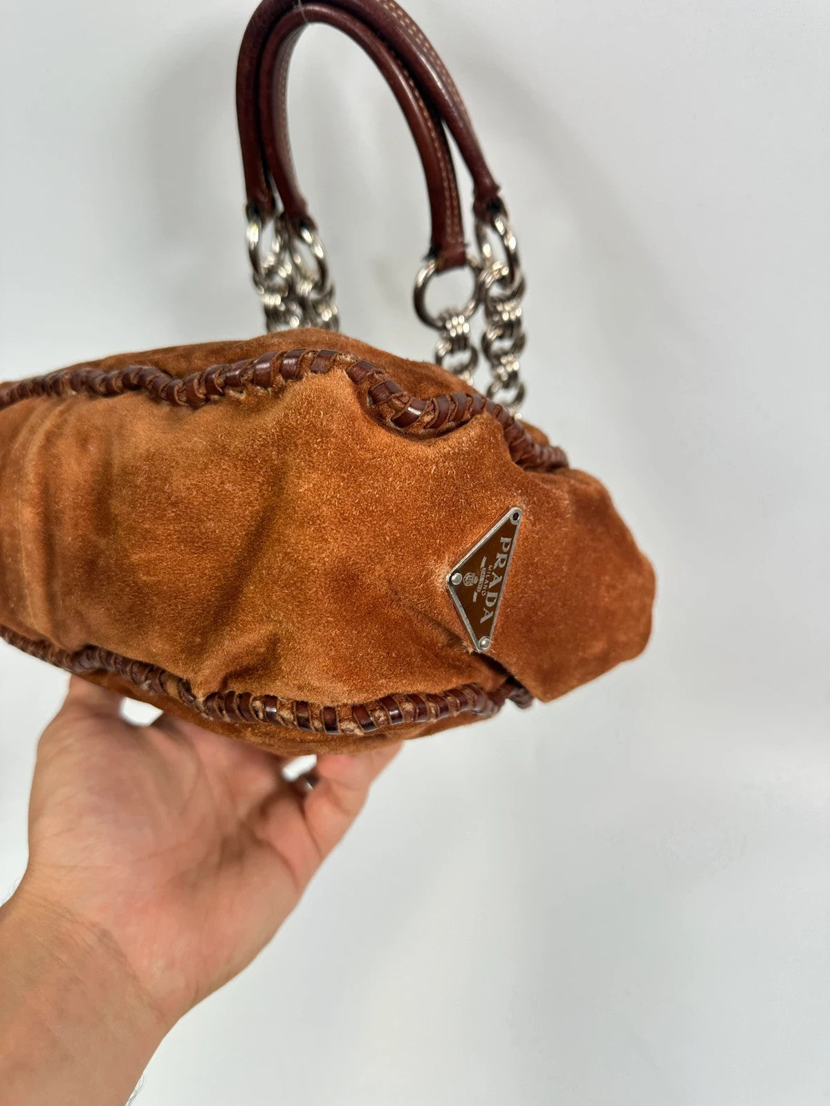 Prada Milano Brown Orange Metal Chains Straps Handbag