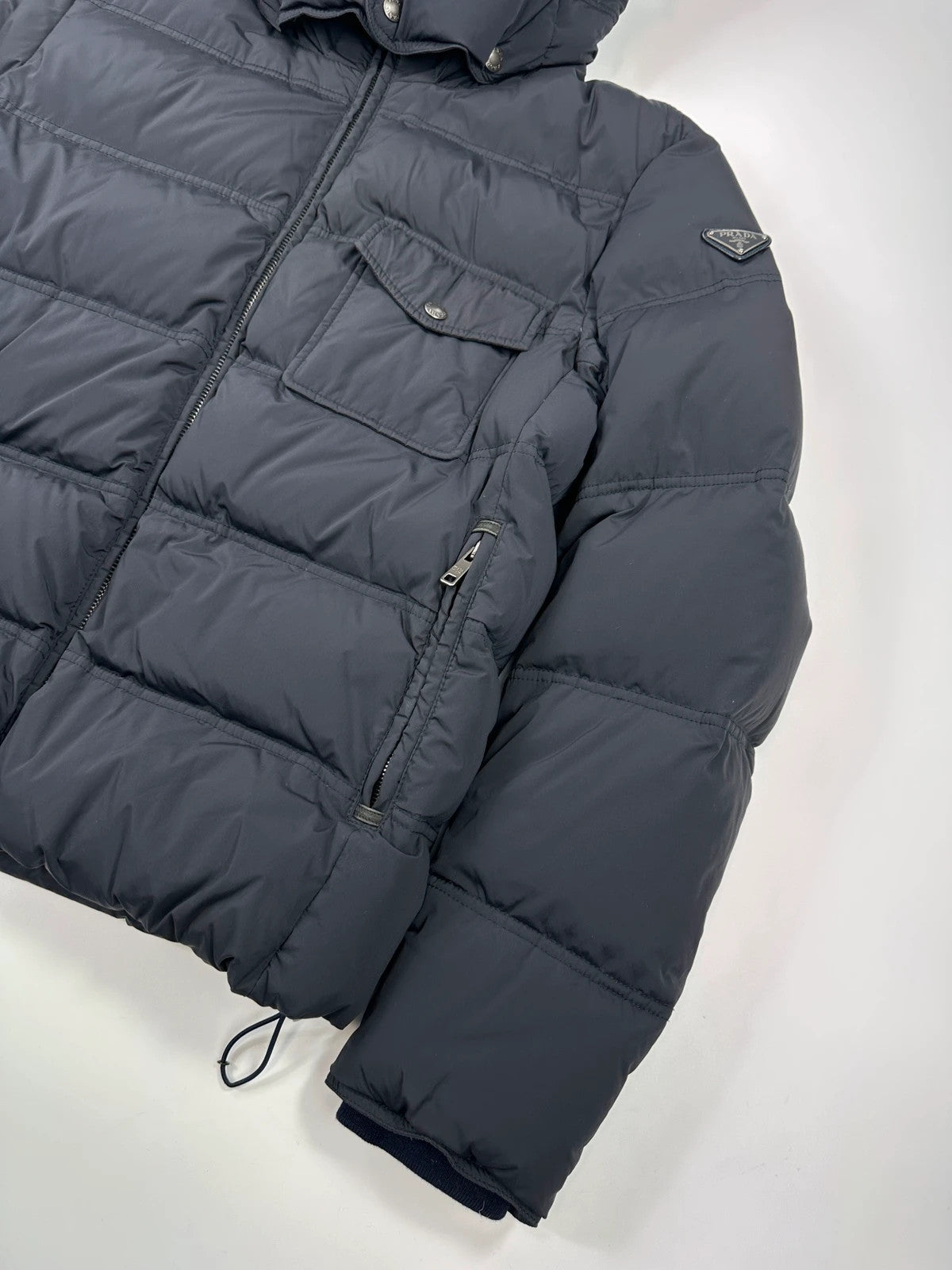 Prada Milano Dark Navy Hooded Puffer Jacket Triangle