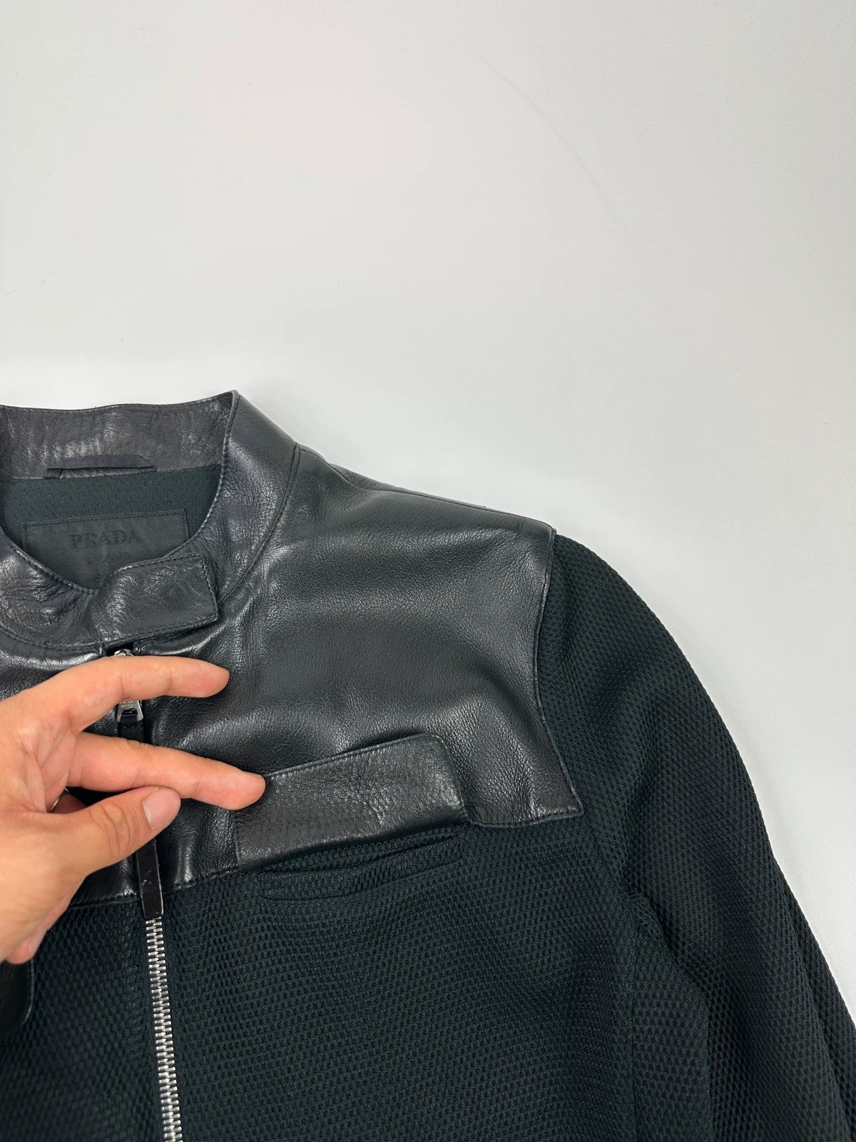 Prada Milano FW1999 Black Mesh & Leather Jacket
