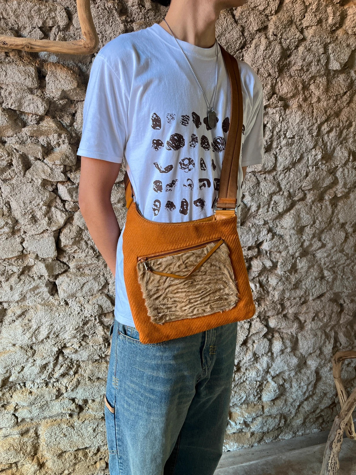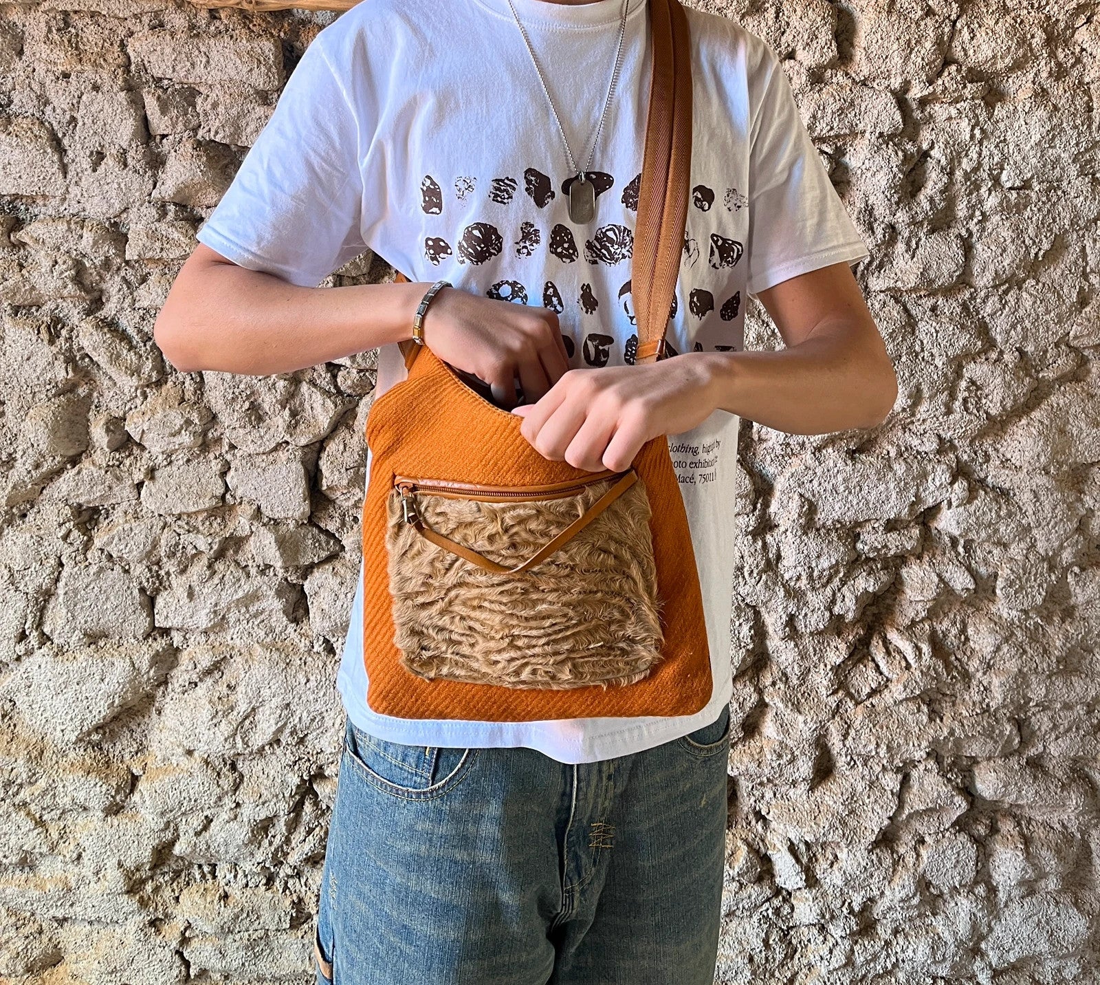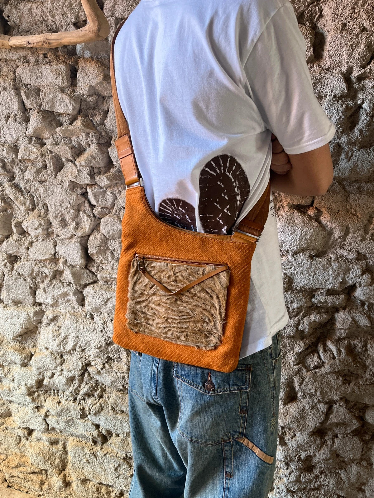 Prada Milano FW1999 Fur & Wool Sling Bag Crossbody Orange Flat