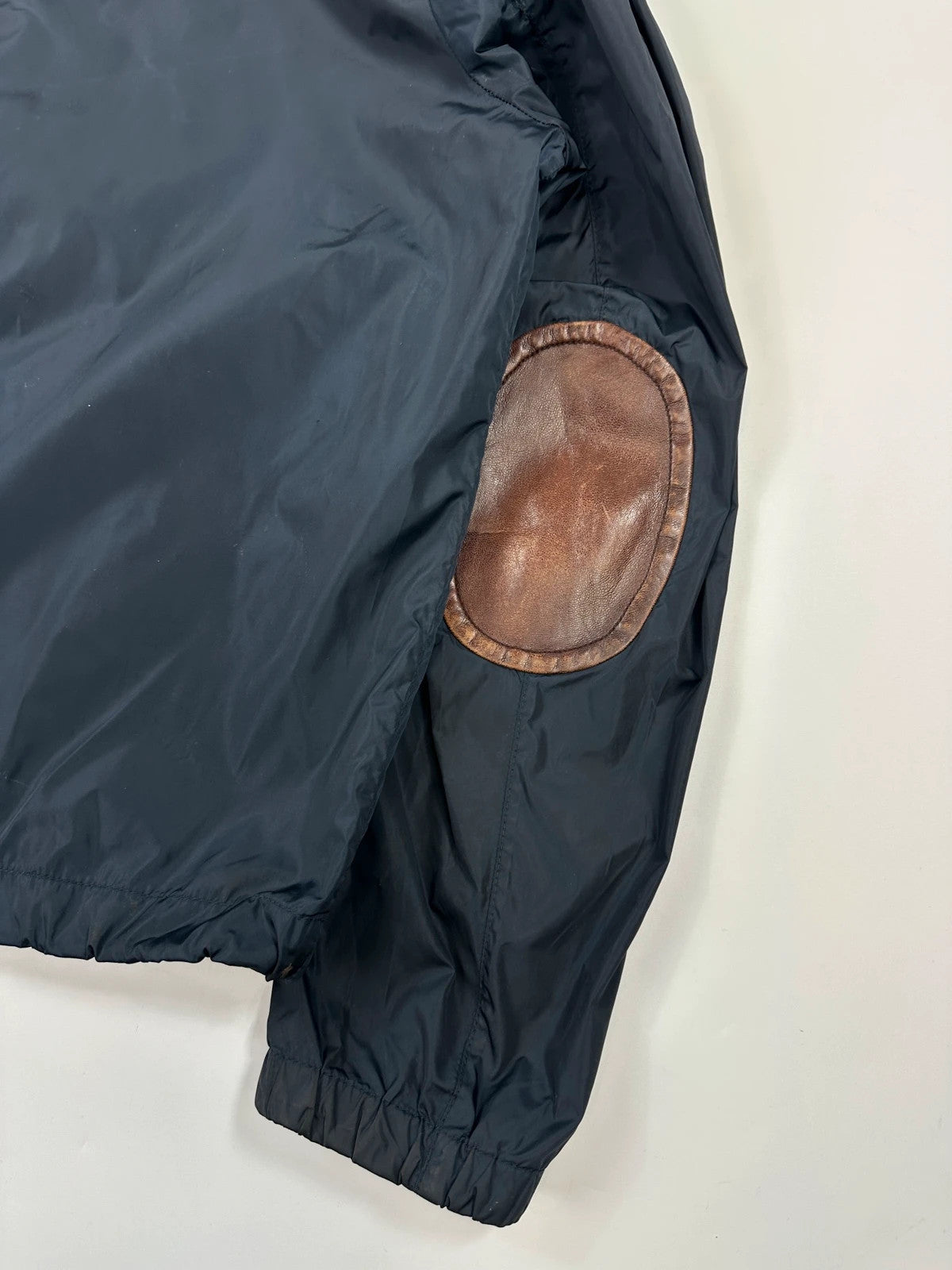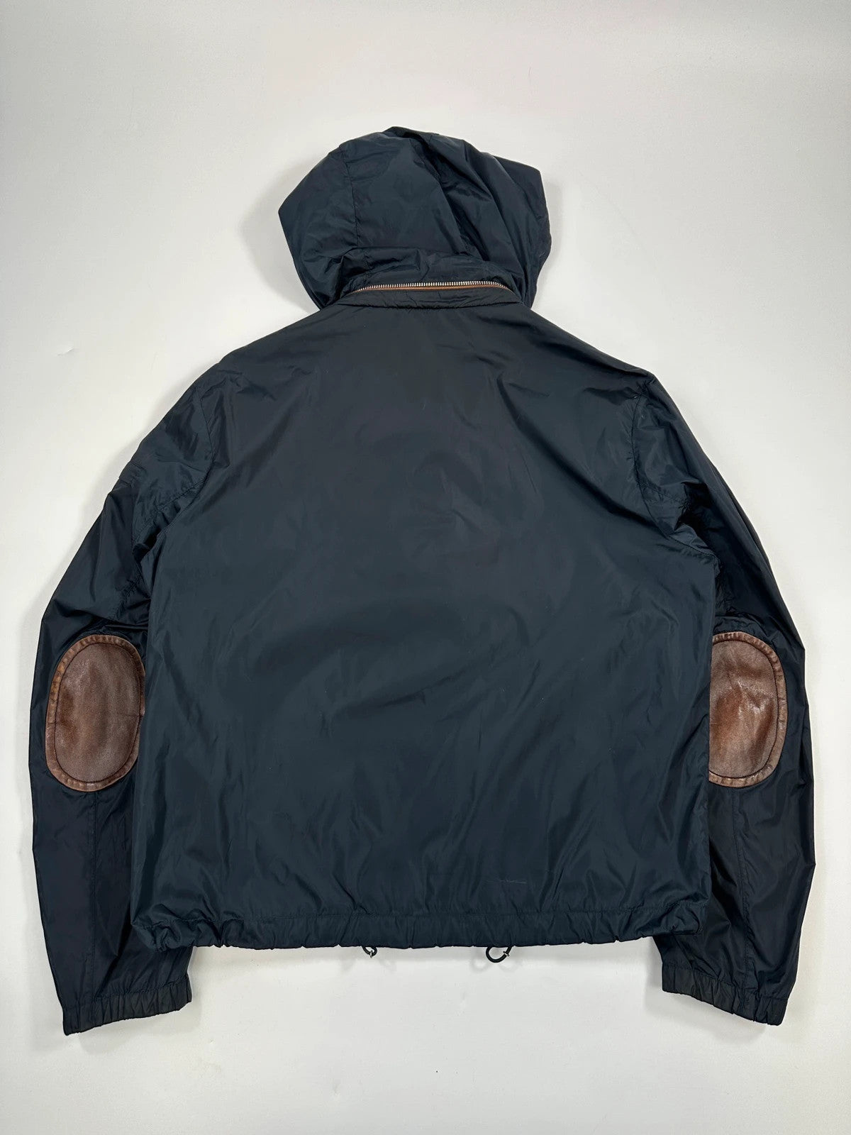 Prada Milano SS2013 Navy Blue Nylon WindBreaker Hooded Jacket Triangle Leather Elbow Patch