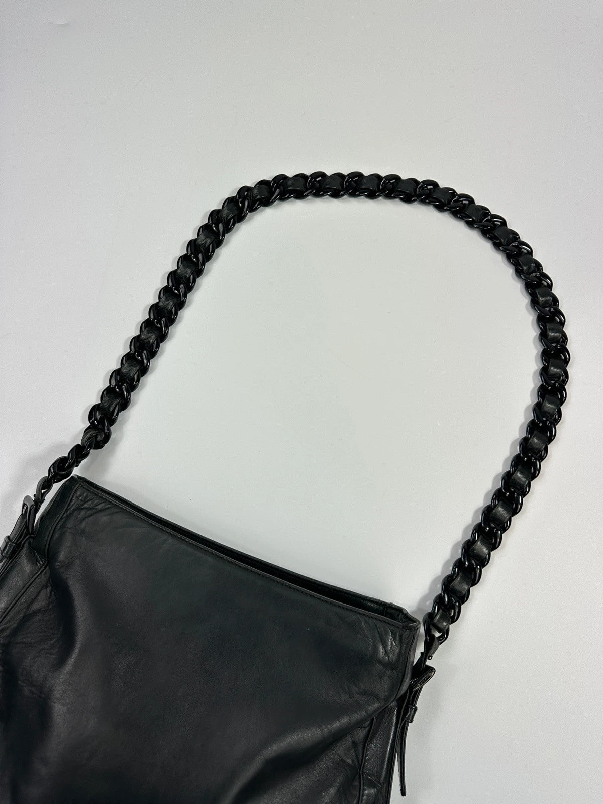 Prada Milano SS99 Black Leather Chains Straps ShoulderBag