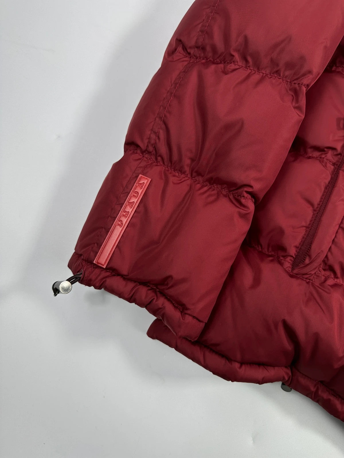 Prada Sport FW2000 Burgundy Red & Brown Hooded Puffer Down Jacket