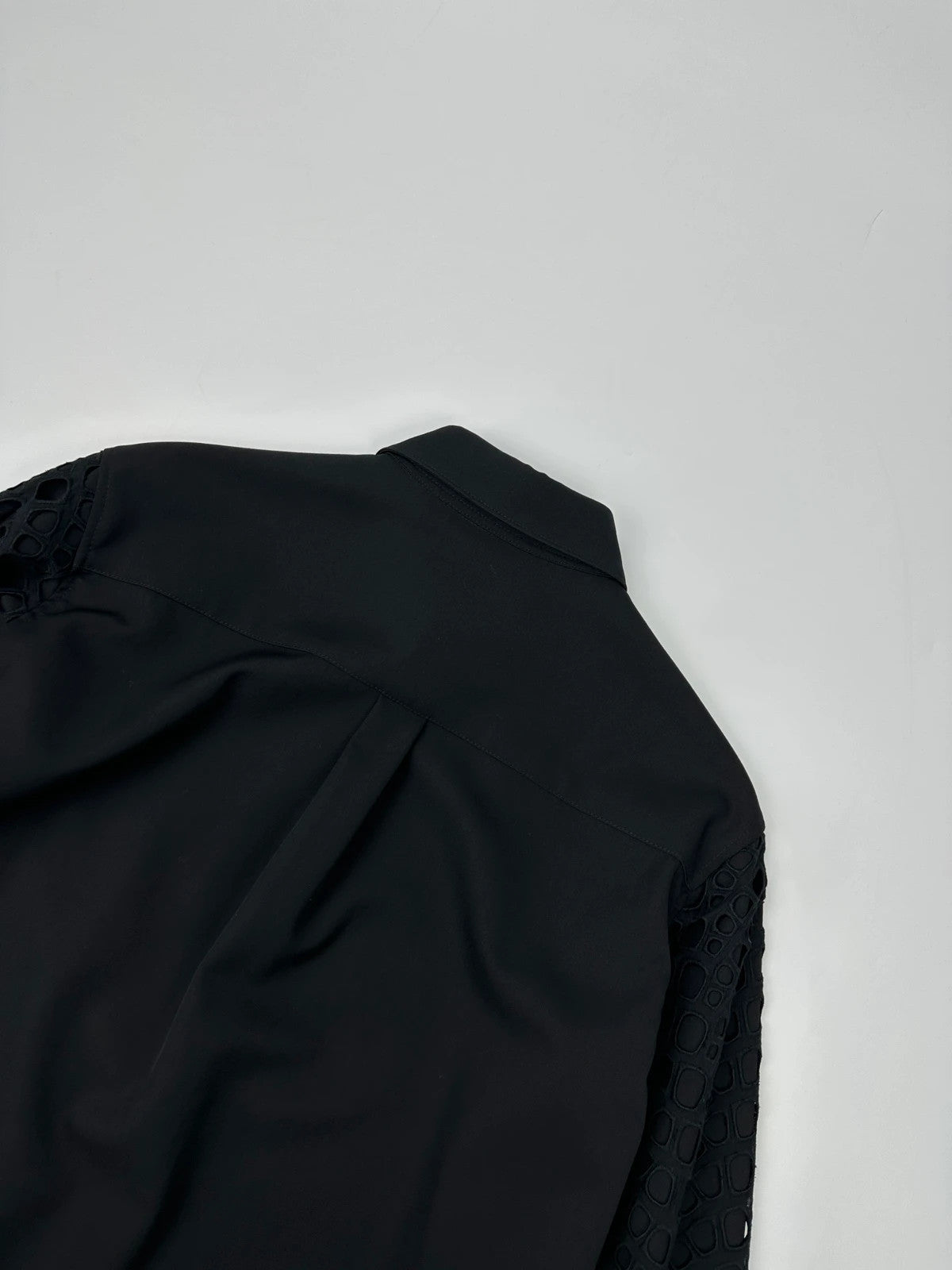 Y’s Yohji Yamamoto Black Wool & Cotton Shirt Mesh Sleeves Details