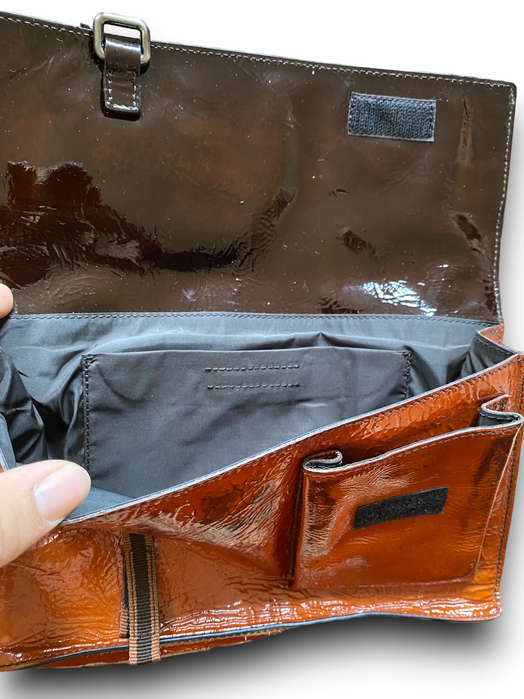 MIU MIU 90s ORANGE PATTENT LEATHER HANDBAG