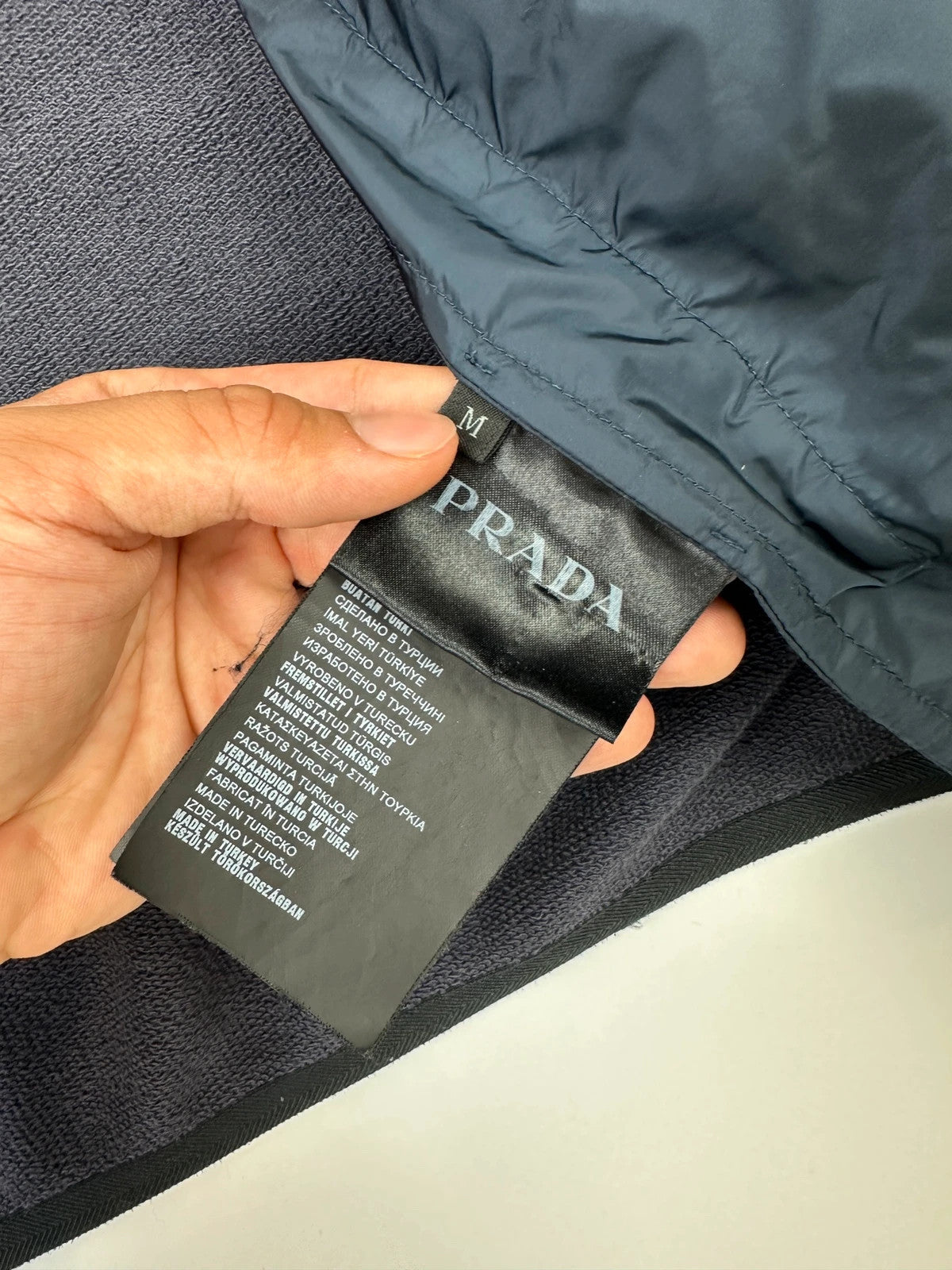 Prada Milano SS2015 Navy Blue Nylon & Cotton Hybrid Zip-Up Sweater