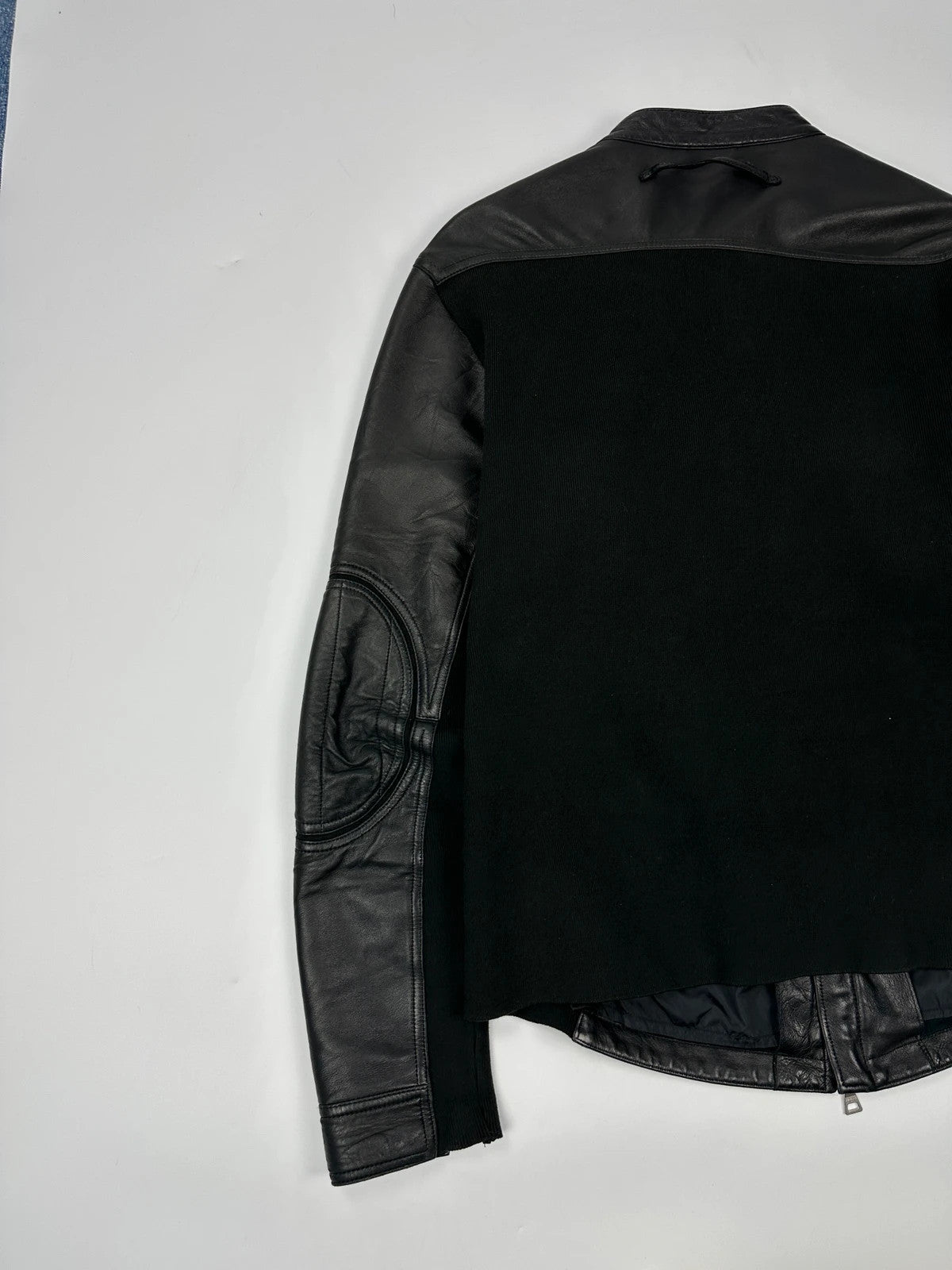 Prada Sport FW2002 Black Leather & Cotton Motor Panel Jacket