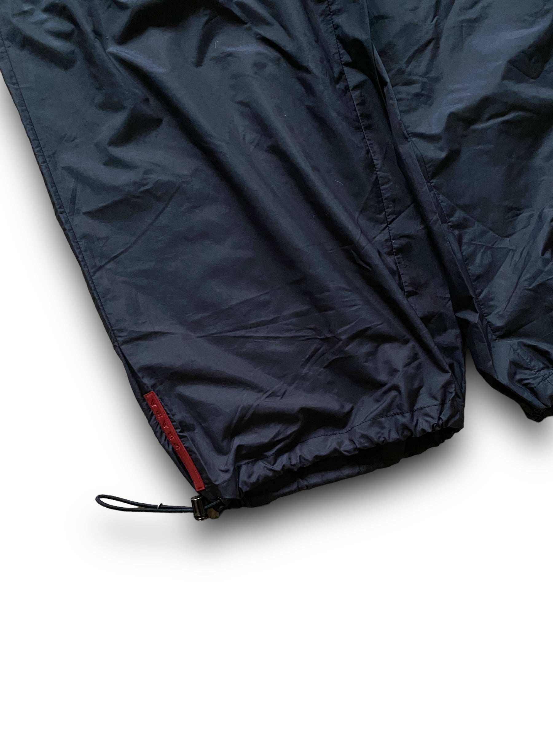 As seen during the first Prada Sport runway in 1999, this pants feature ajustable waist and leg hems in black nylon.