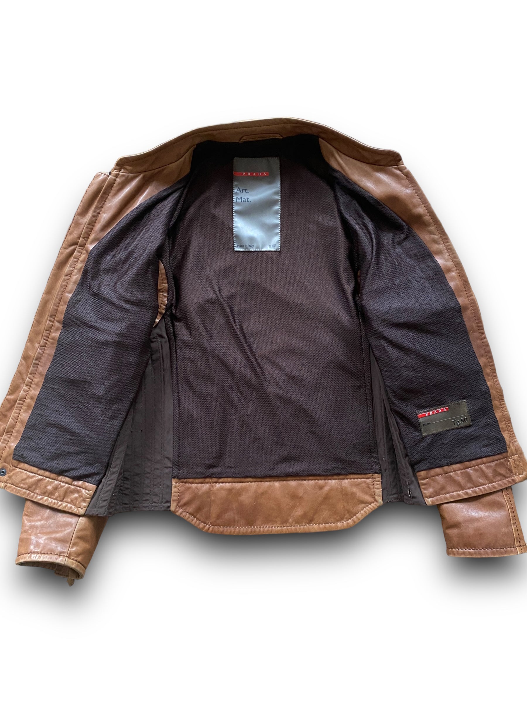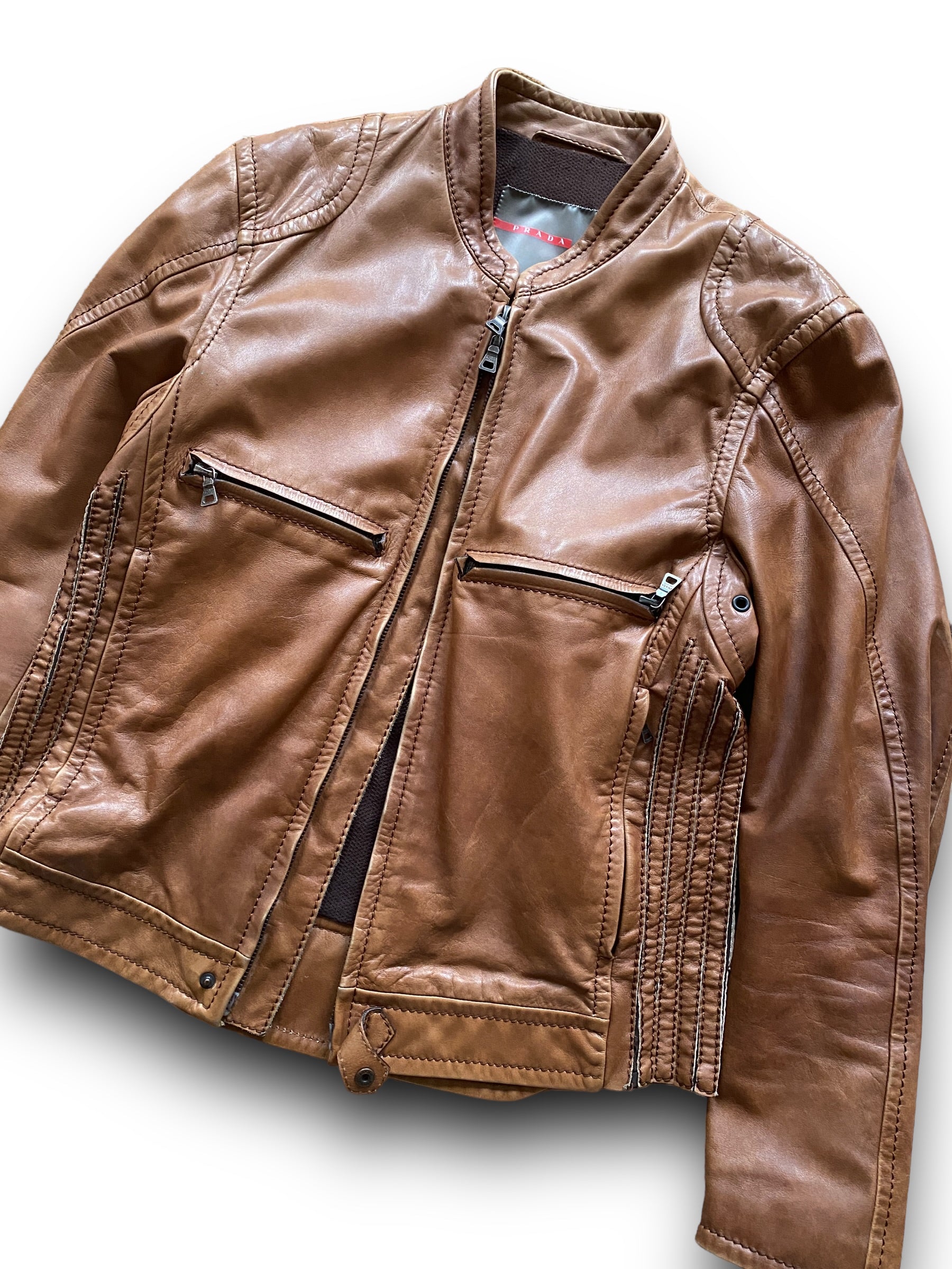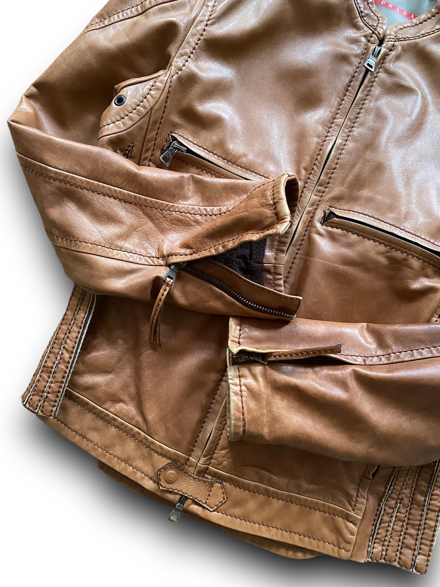 PRADA SPORT 00s CAMEL SAMPLE COWBOYS LEATHER JACKET (M)