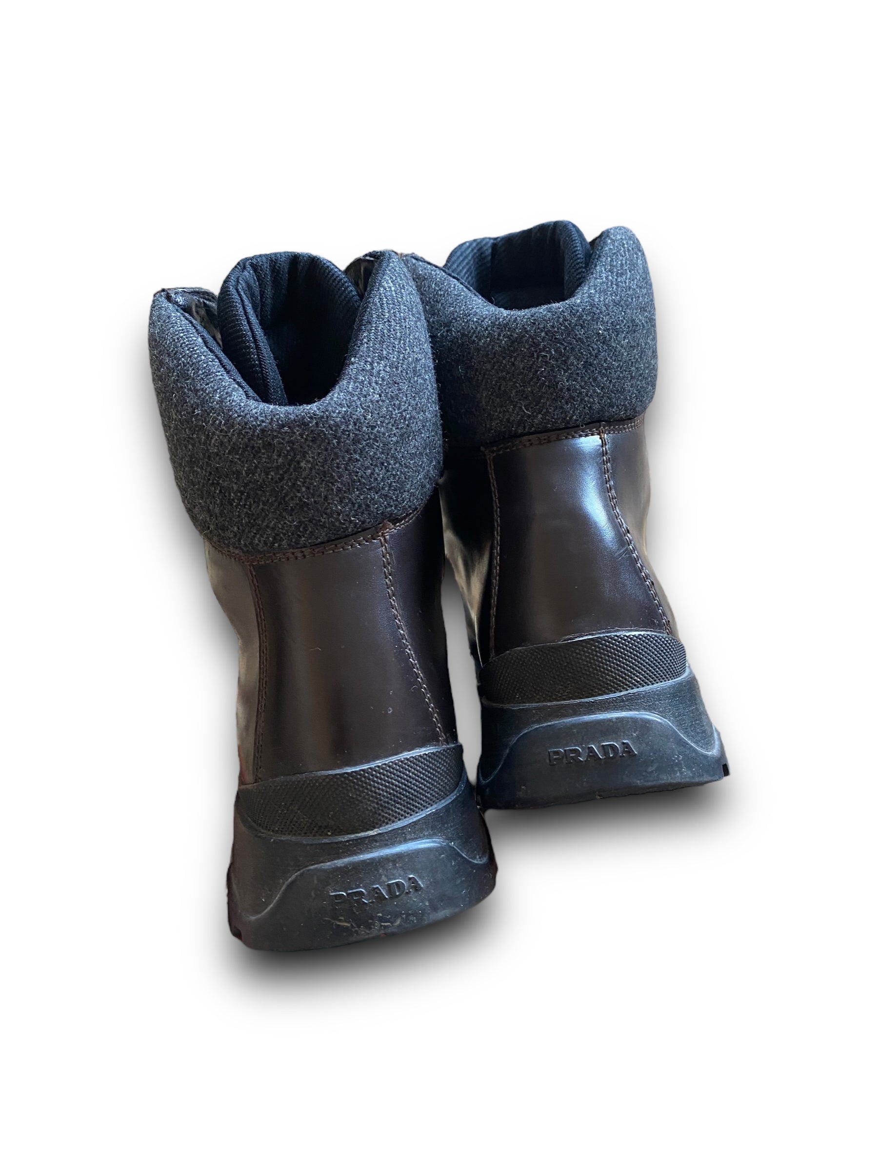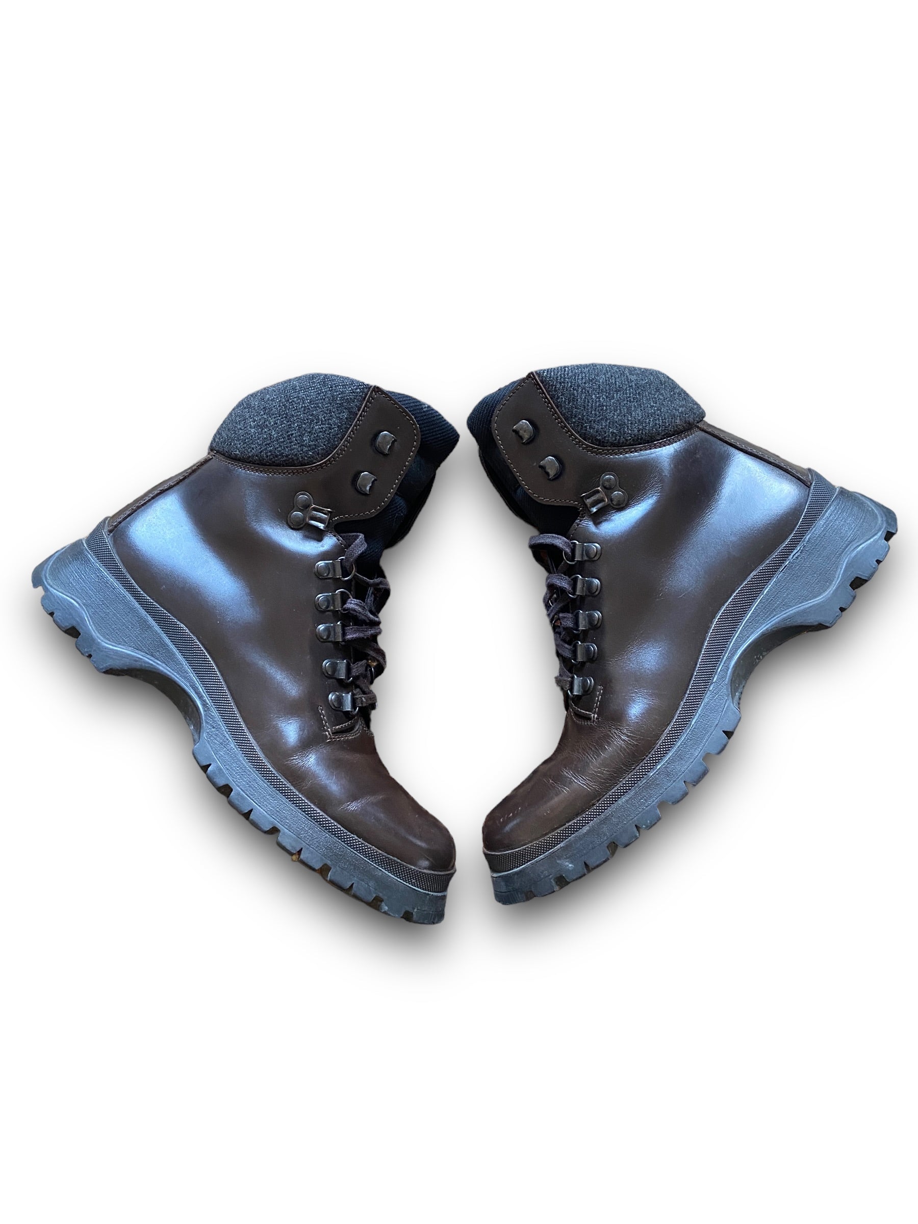 PRADA SPORT BRIXXEN PATENT BROWN LEATHER WALKING BOOTS (40,5-41EU)