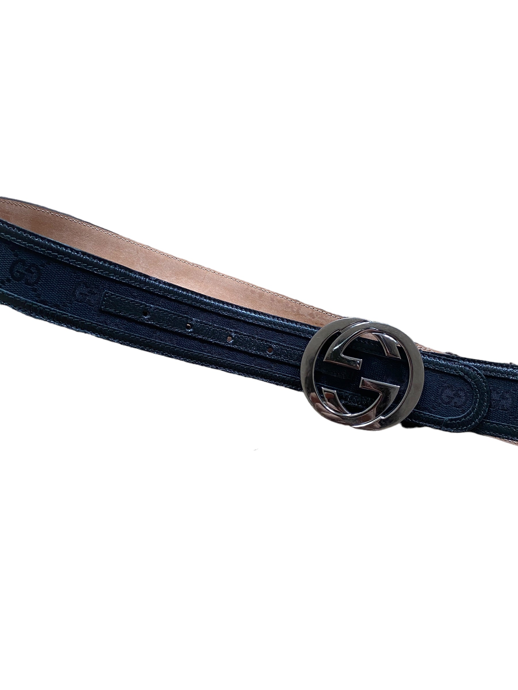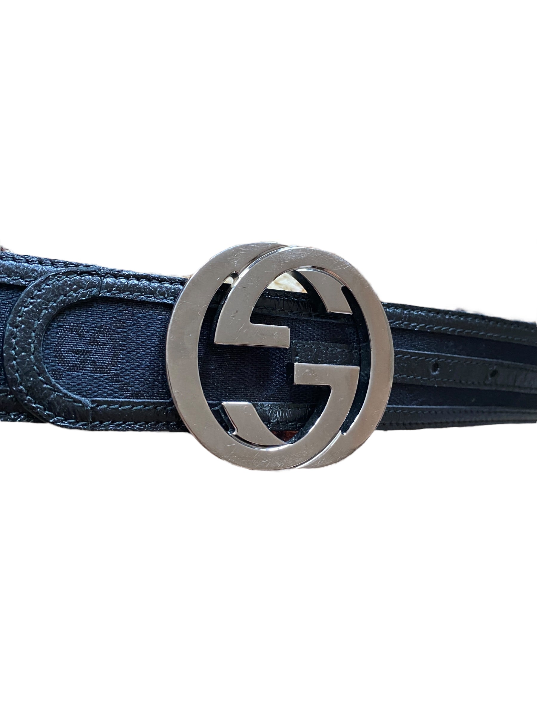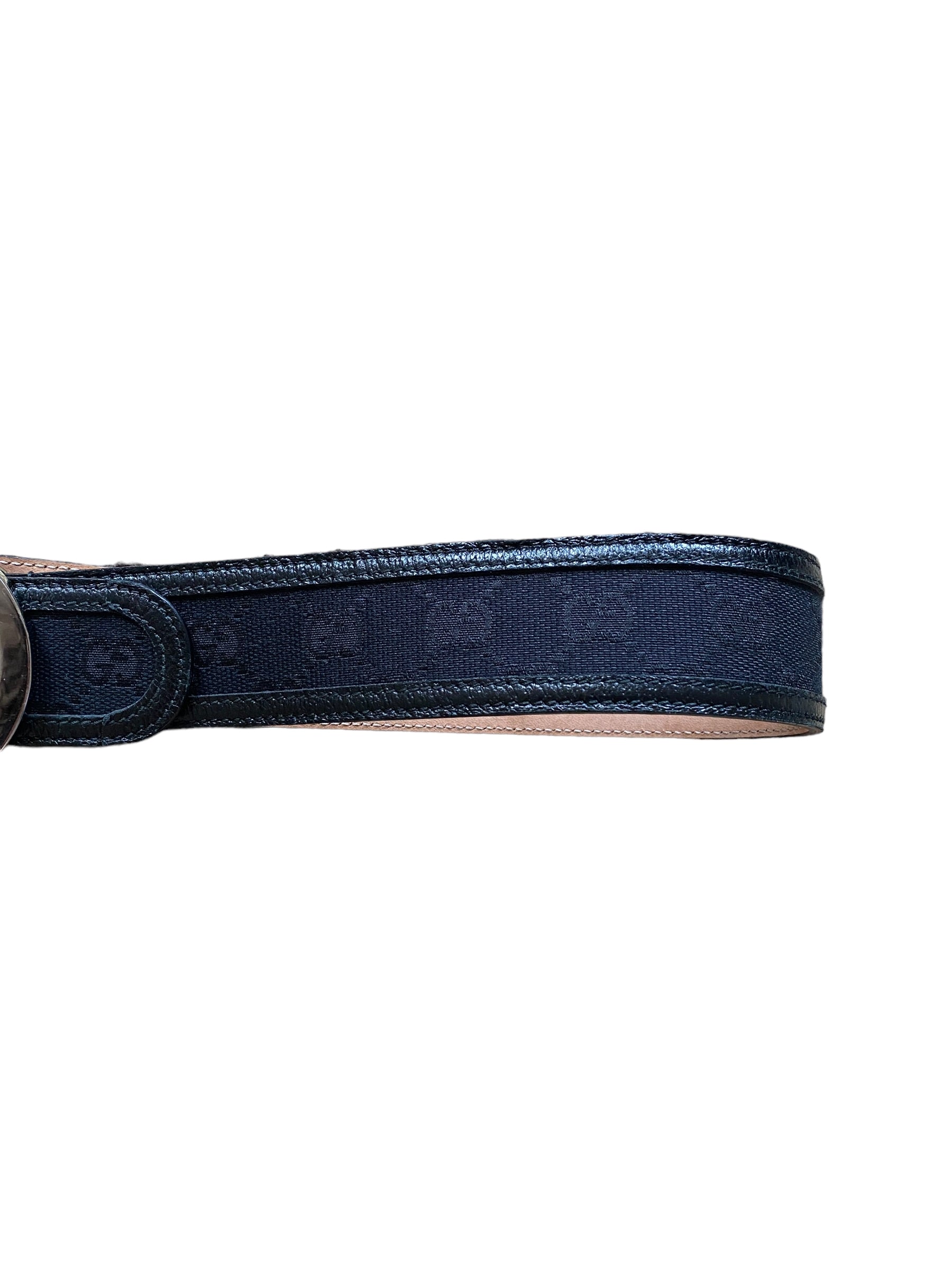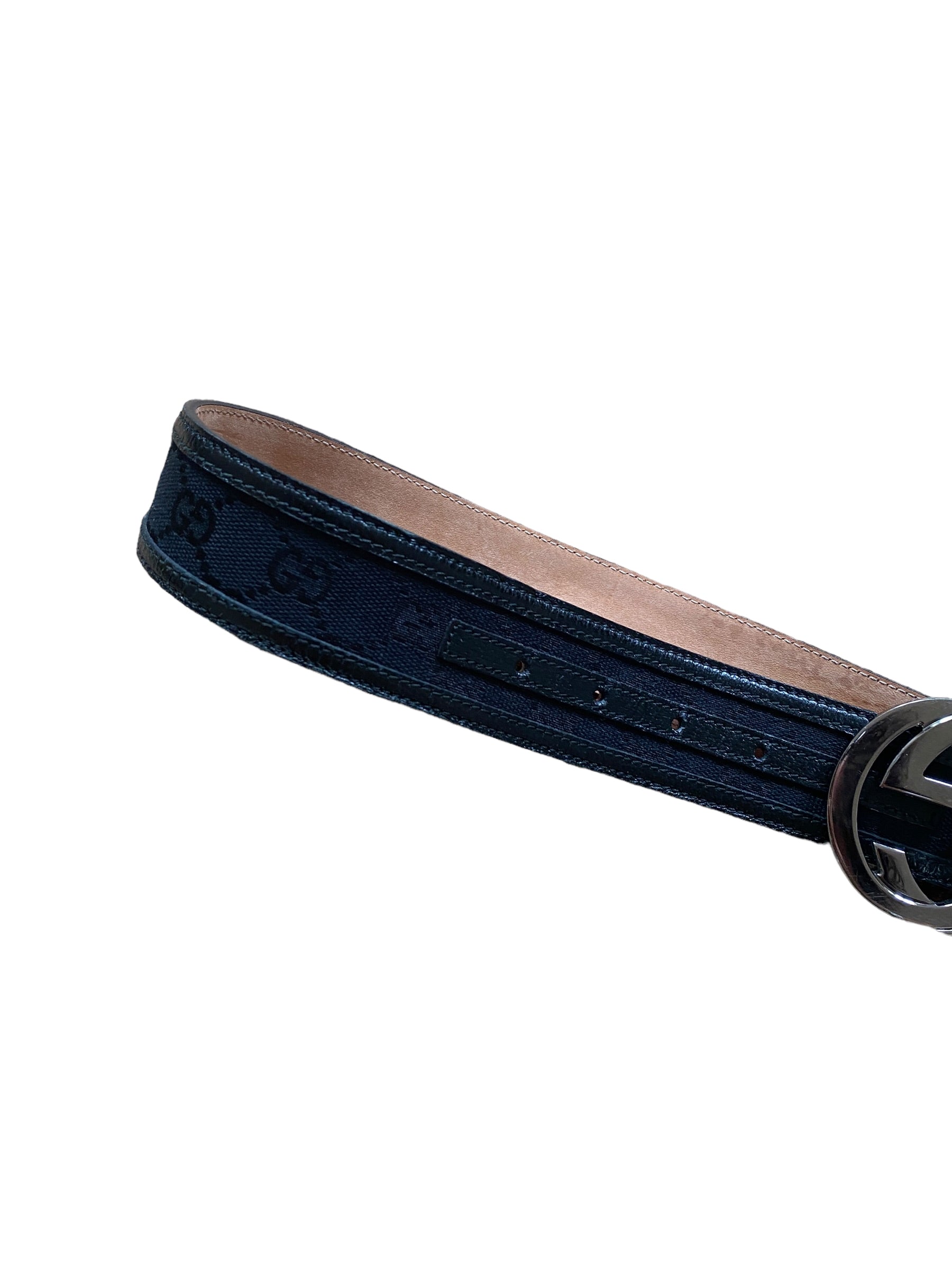 GUCCI BLACK GG SUPREME MONOGRAM CANVAS X LEATHER BELT