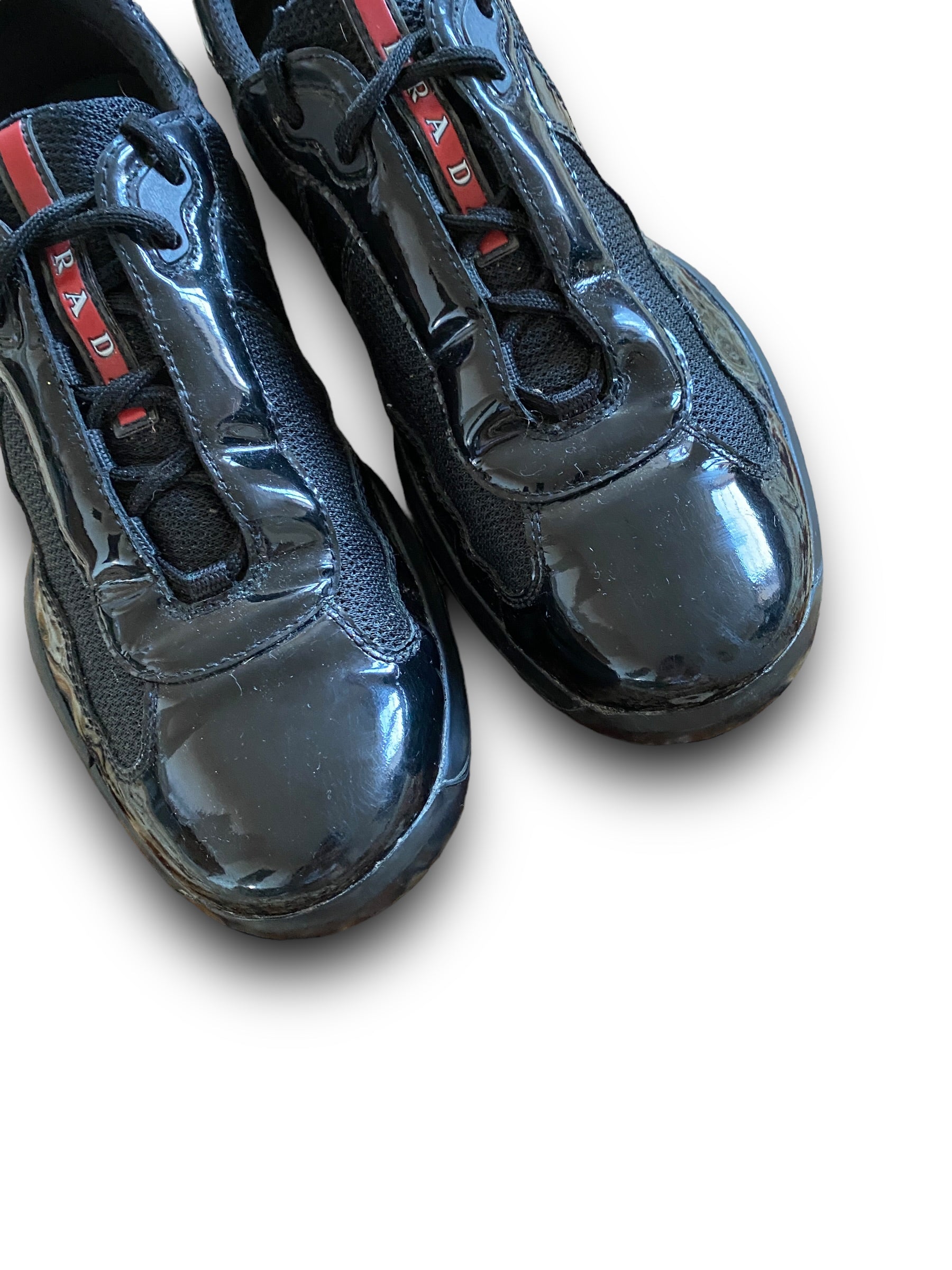 PRADA BLACK LEATHER VERNIS PATENT AMERICA’S CUP SHOES